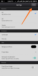 pilih pengaturan flim seperti kualitas, orientasi,warna latar belakang dan lainnya. Kemudian click tombol "done" disudut kanan atas.